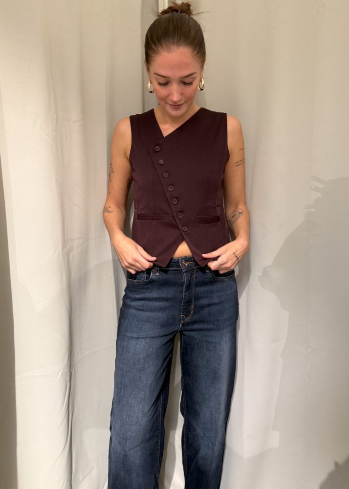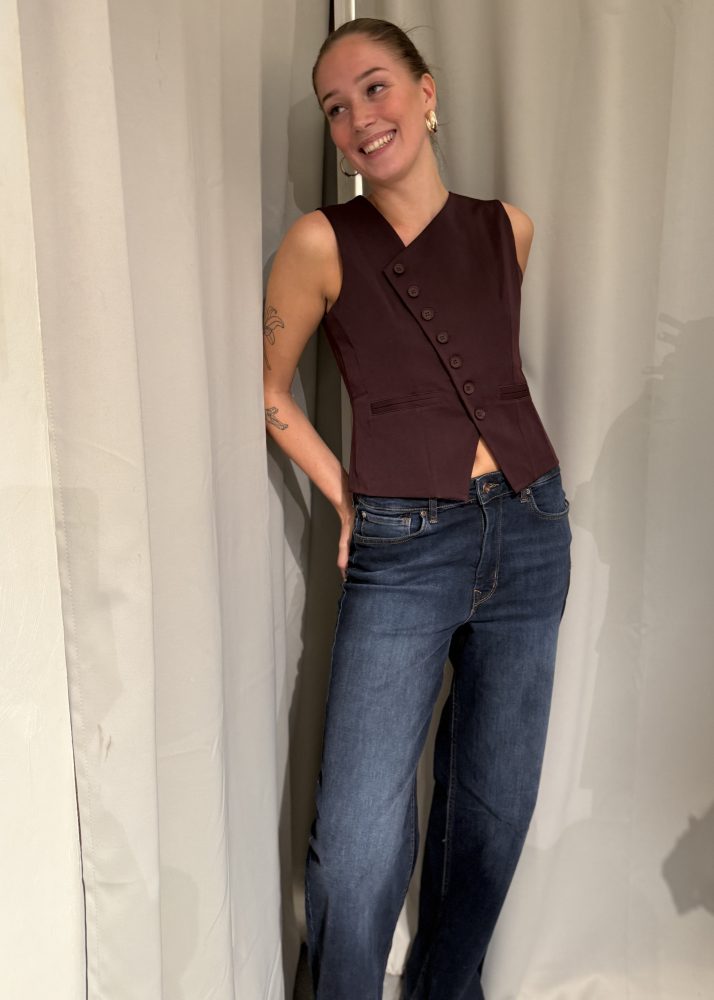 Modellen har på str medium. Vesten er liten i størrelsen! Gå opp en størrelse av hva du vanligvis bruker og er man litt større over bysten så gå gjerne opp 2 størrelser❤️ Denne vesten tåler å være litt mer oversized.