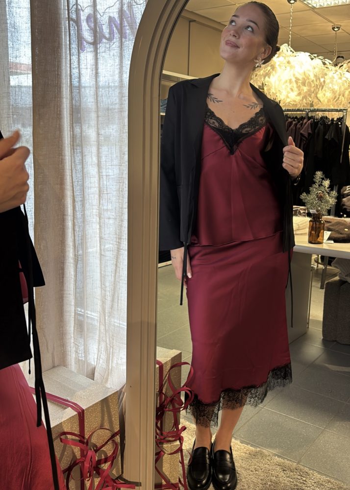 Coleen Lace Satin Skirt Bordeaux