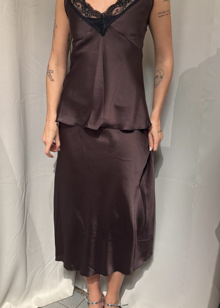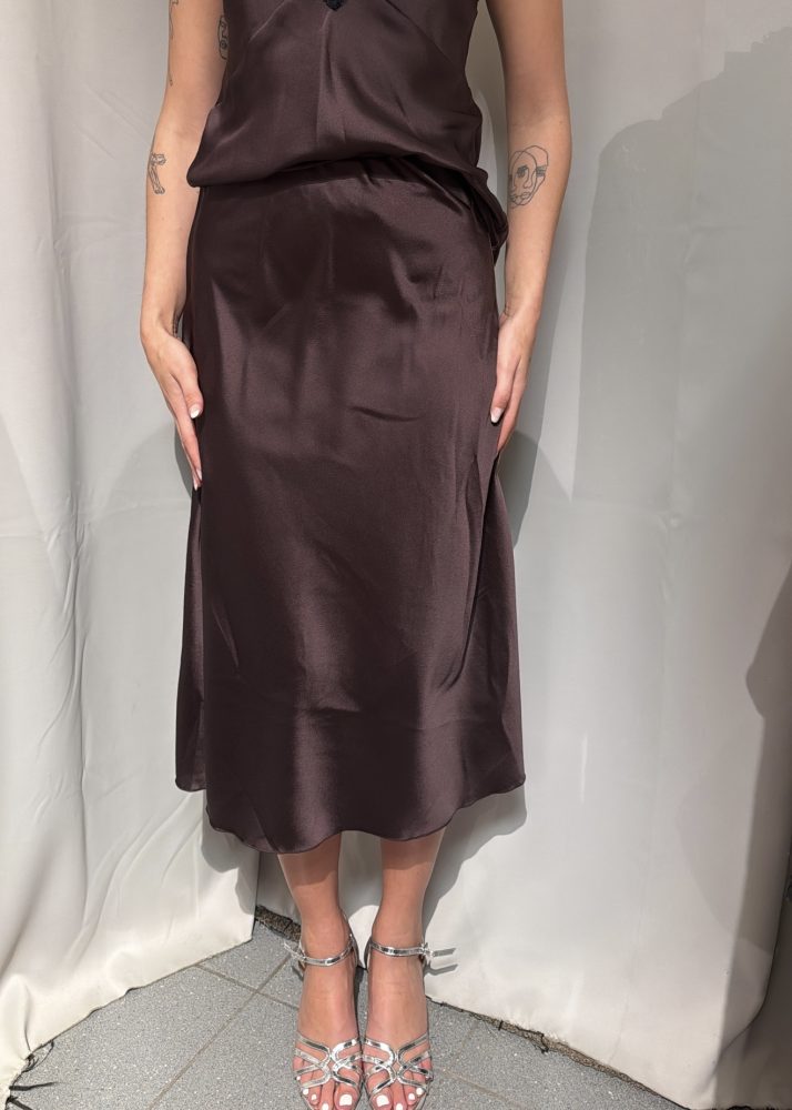 Coleen Satin Skirt Brown