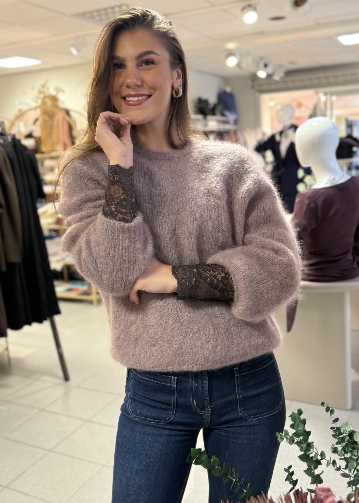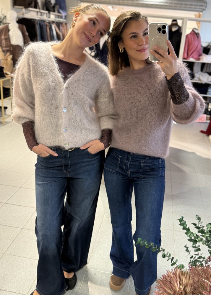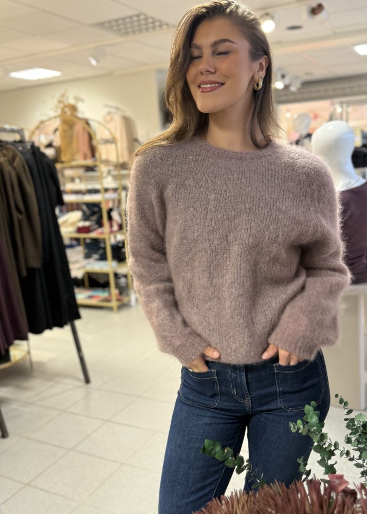 Deilig og lett strikk i 80% kid mohair. Super myk mot huden og superfin til både jeans og skjørt – en perfekt genser til sesongens antrekk. Klør ikke!