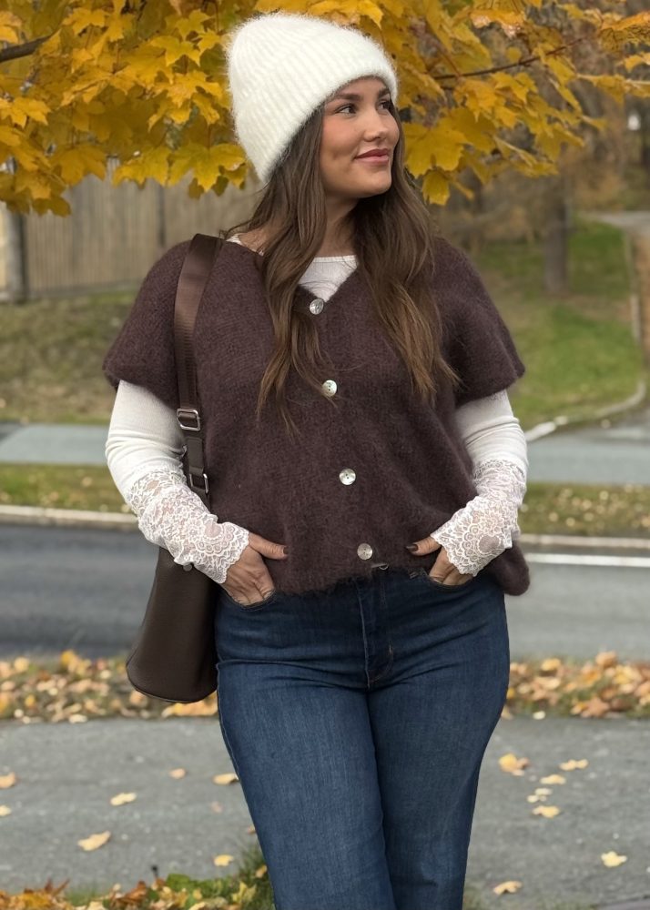 Innhold: 80% kid mohair, 18% polyamide, 2% elastan. Størrelse: One size. Vask: 30 grader.