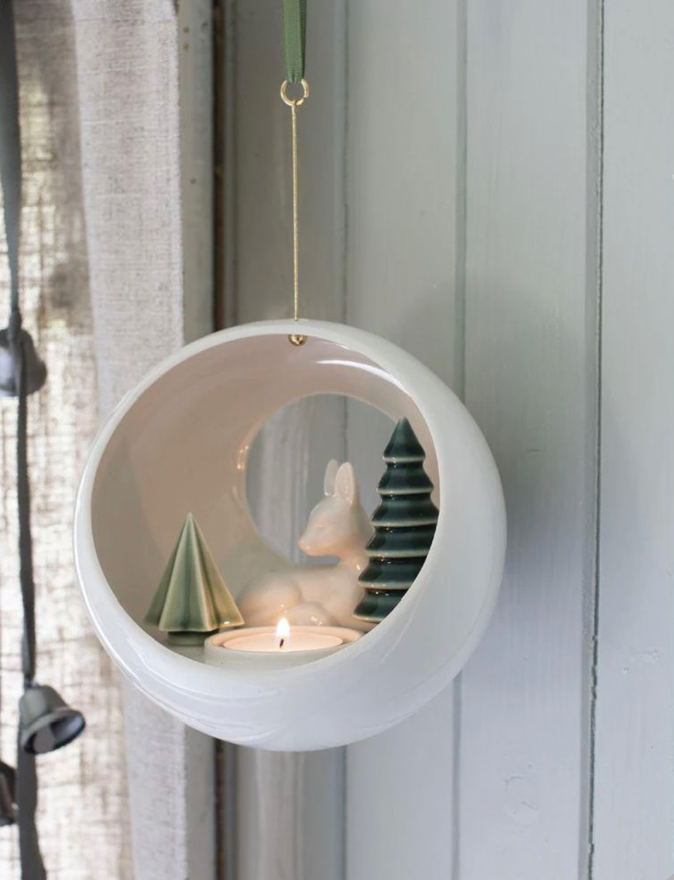 Hengende lysestake, Fawn Hanging, fra Winter Stories-serien til Dottir. Lysestaken illusterer et dådyr i skogen, med plass til telys i midten. Kommer i en fin gaveeske, og har et grønt bånd til oppheng. Winter Stories er en koselig serie til hjemmet som skaper en varm og god atmosfære. Måler 13 cm i diameter.