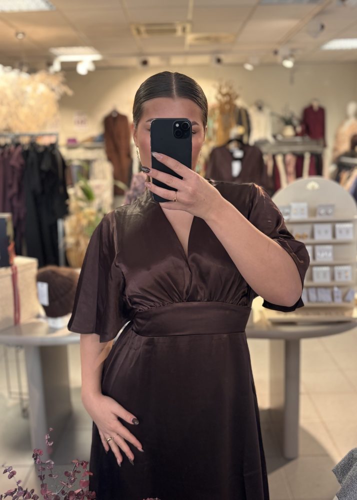 Flowy Satin Dress Brown