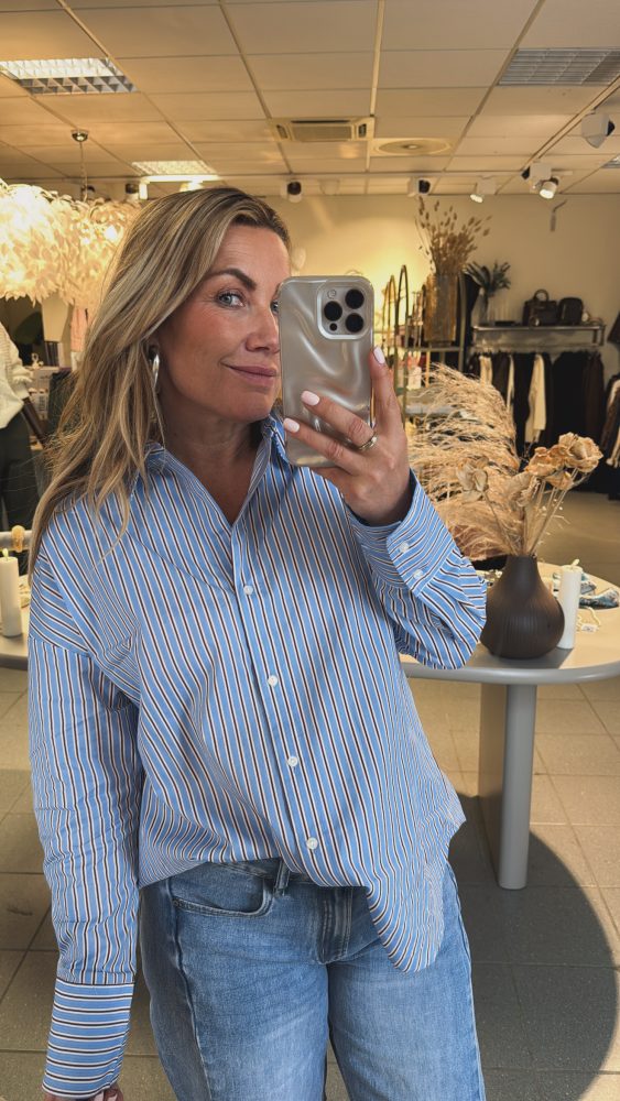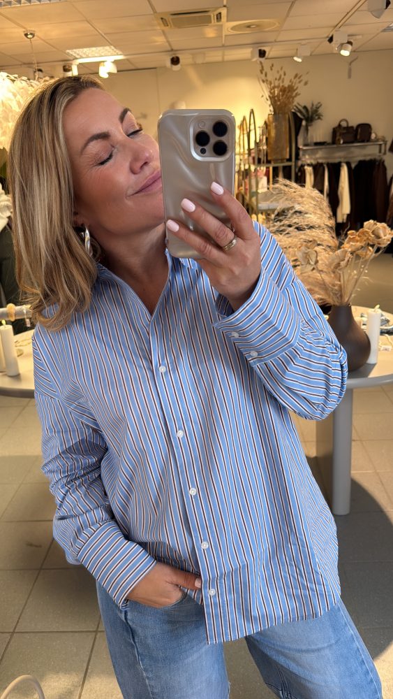 Lisa skjorte blå m brunstriper