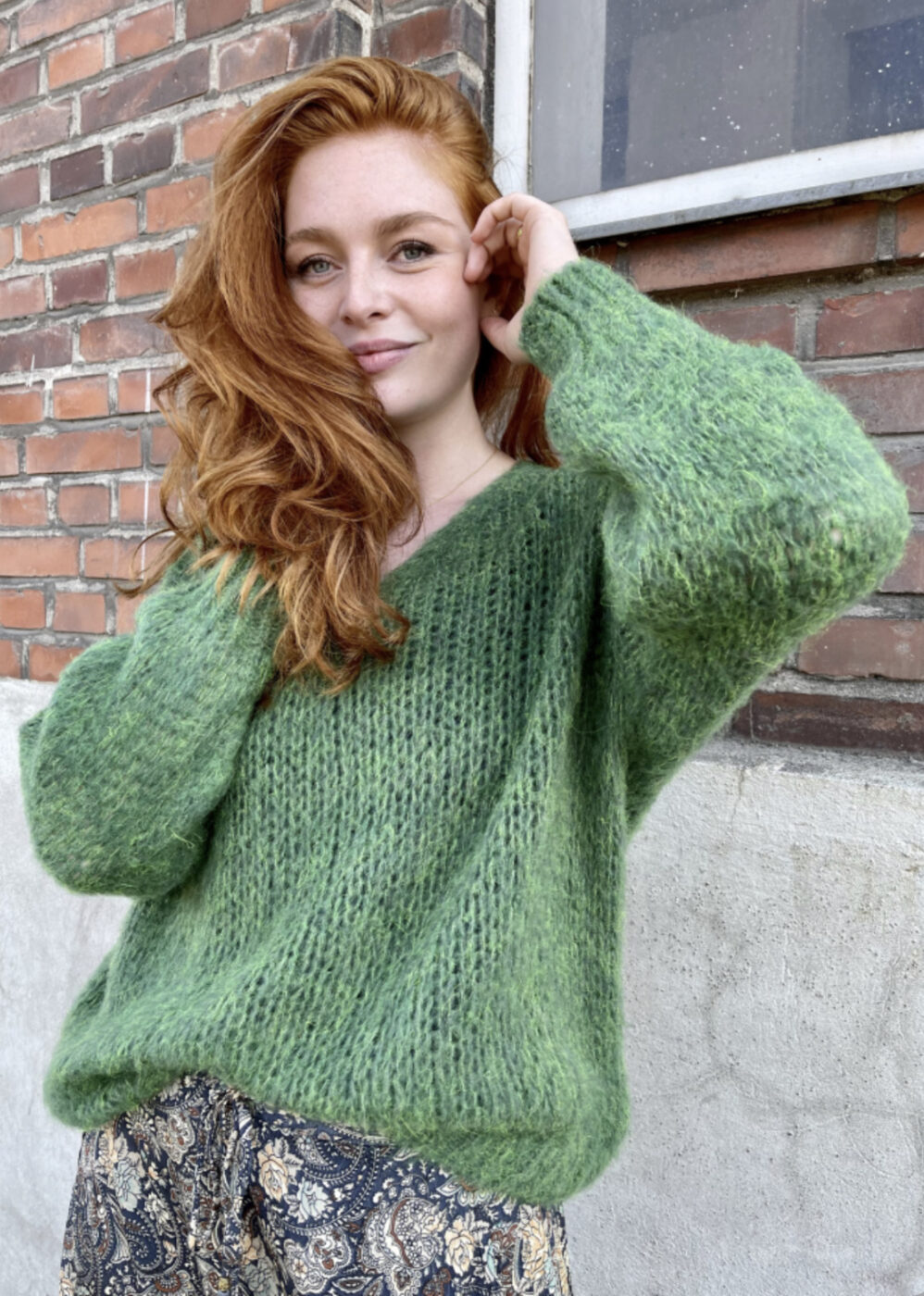 Nydelig deilig lett og fin strikk med V-hals. Klør ikke.