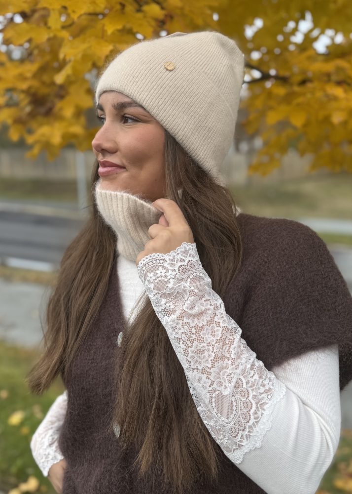 SKIING luen er en fantastisk lue i ull og mykk angora den er tet strikket, hvilket gjør den ekstra varm i vinn og kulde. Den holder deg god og varm på en vinterdag.  Dette er en alsidig lue som passer både til skituren eller en tur på shopping.