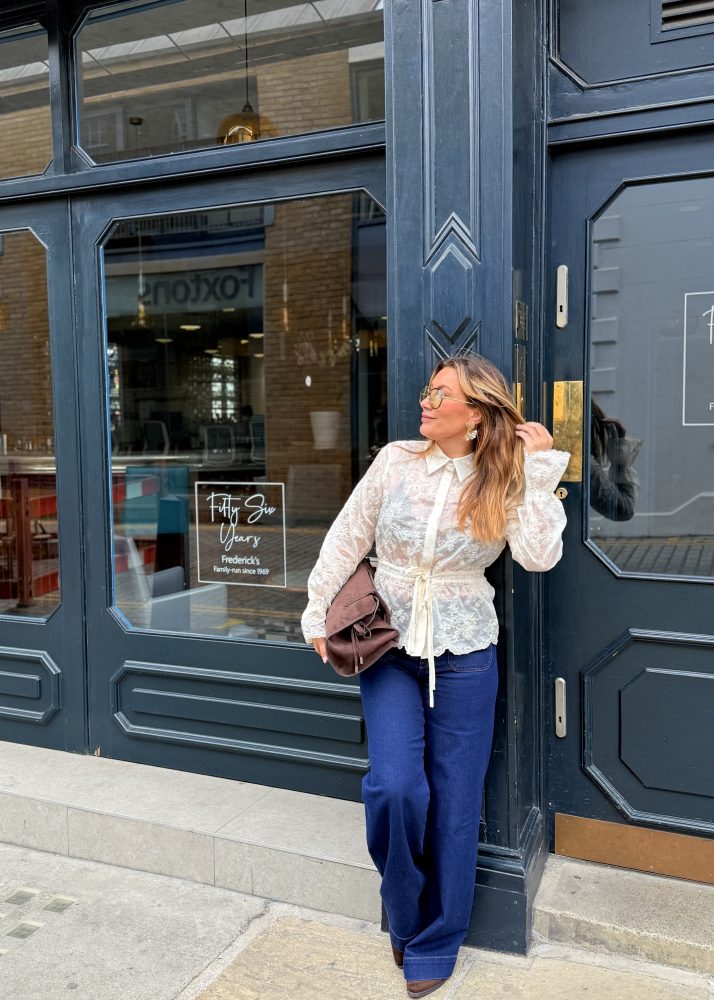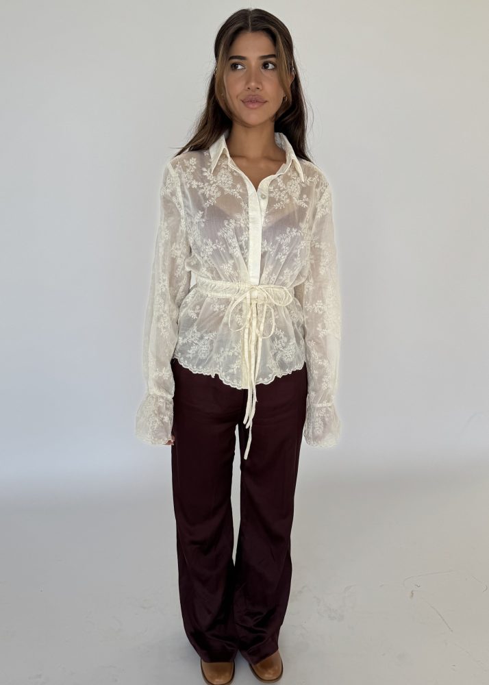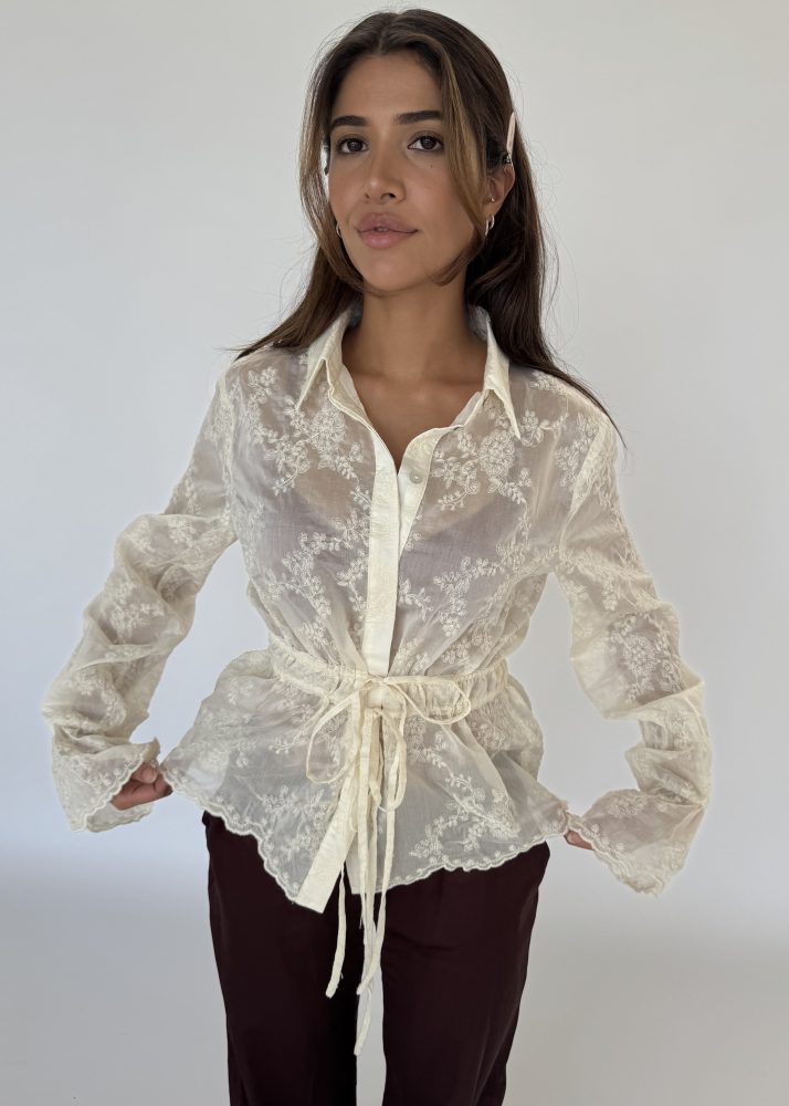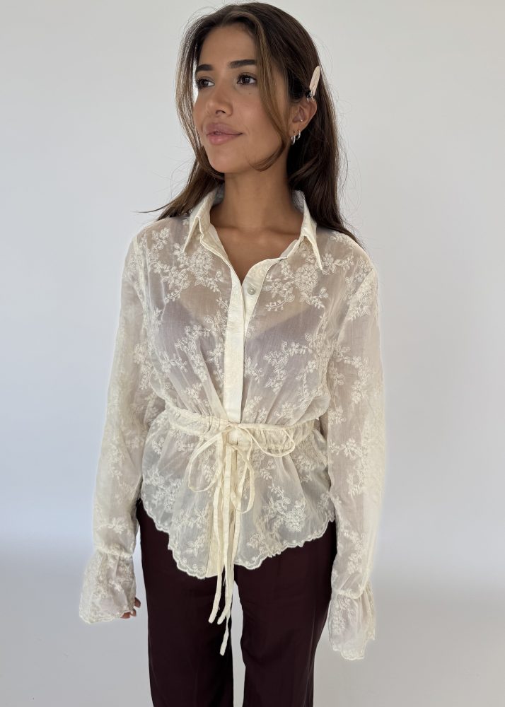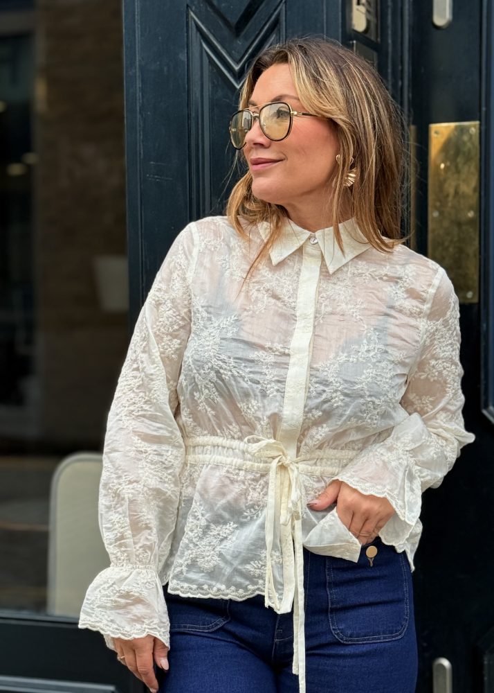 Nydelig blonde bluse med snøre i livet – dødslekker! Liten i størrelsen.