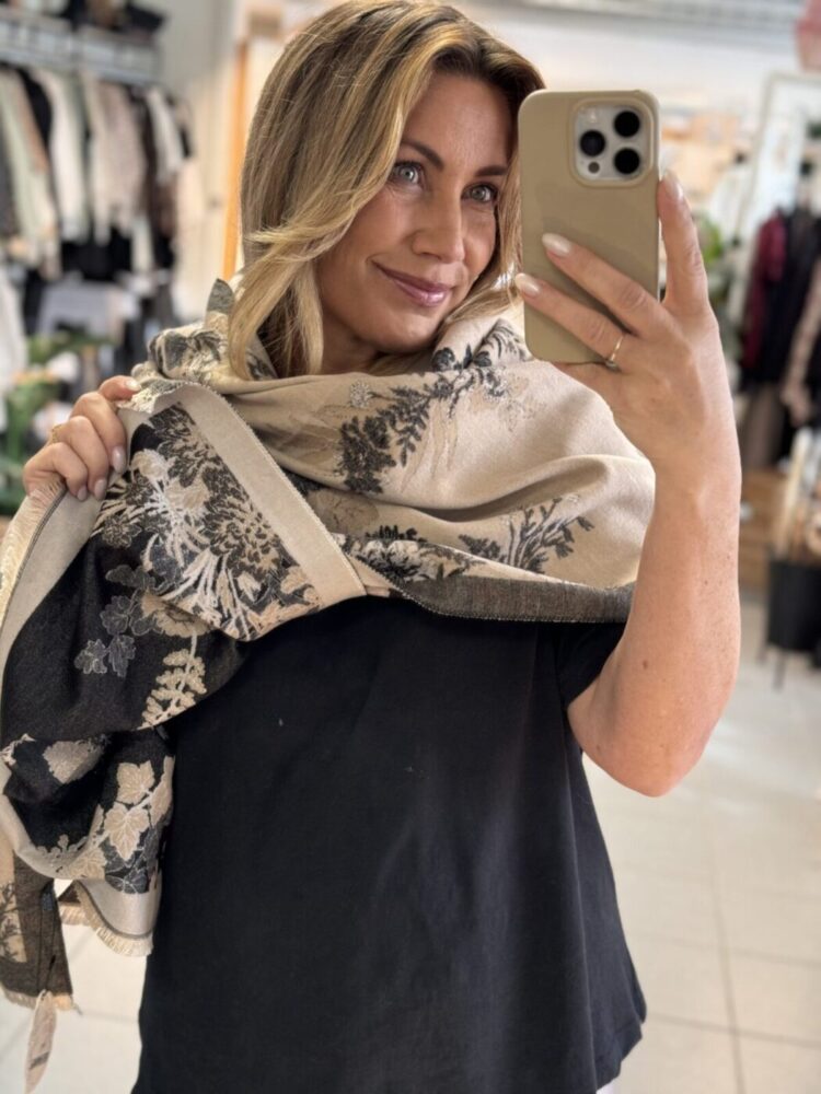 Fantastisk finvevd skjerf i retrolook, som er vendbart sort/ beige. Dette er en skatt du aldri vil kvitte deg med! Vi elsker ❤️